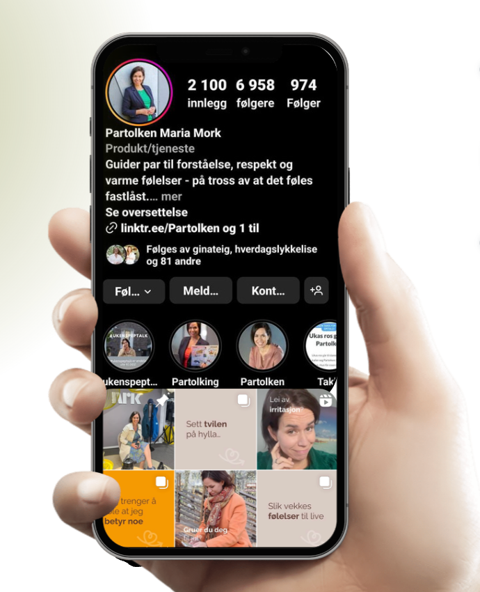 Følg Partolken på sosiale medier, og få påfyll som inspirerer og motiverer deg til å ta vare på deg selv og forholdet ditt. Instagram og Facebook.